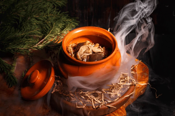 - Горячее на основе каши — символа русской и уральской кухни, но в авторской интерпретации с нестандартными сочетаниями.